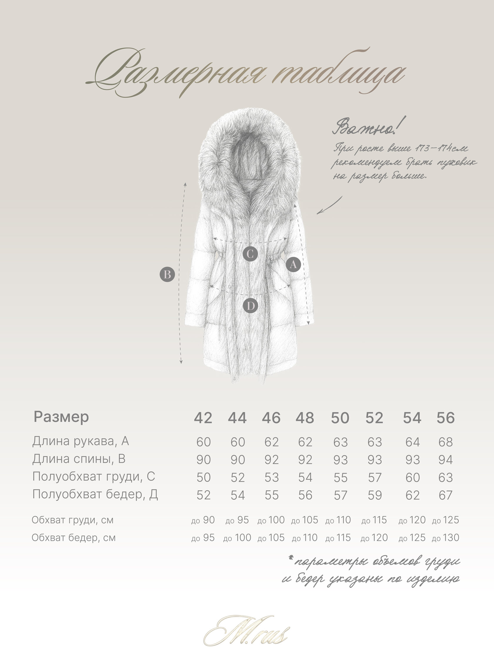 Эта модель — о том, как может выглядеть тёплая зима: изысканно, легко и с характером. Мех чернобурой лисы идёт по всему периметру и делает силуэт выразительным и статусным.