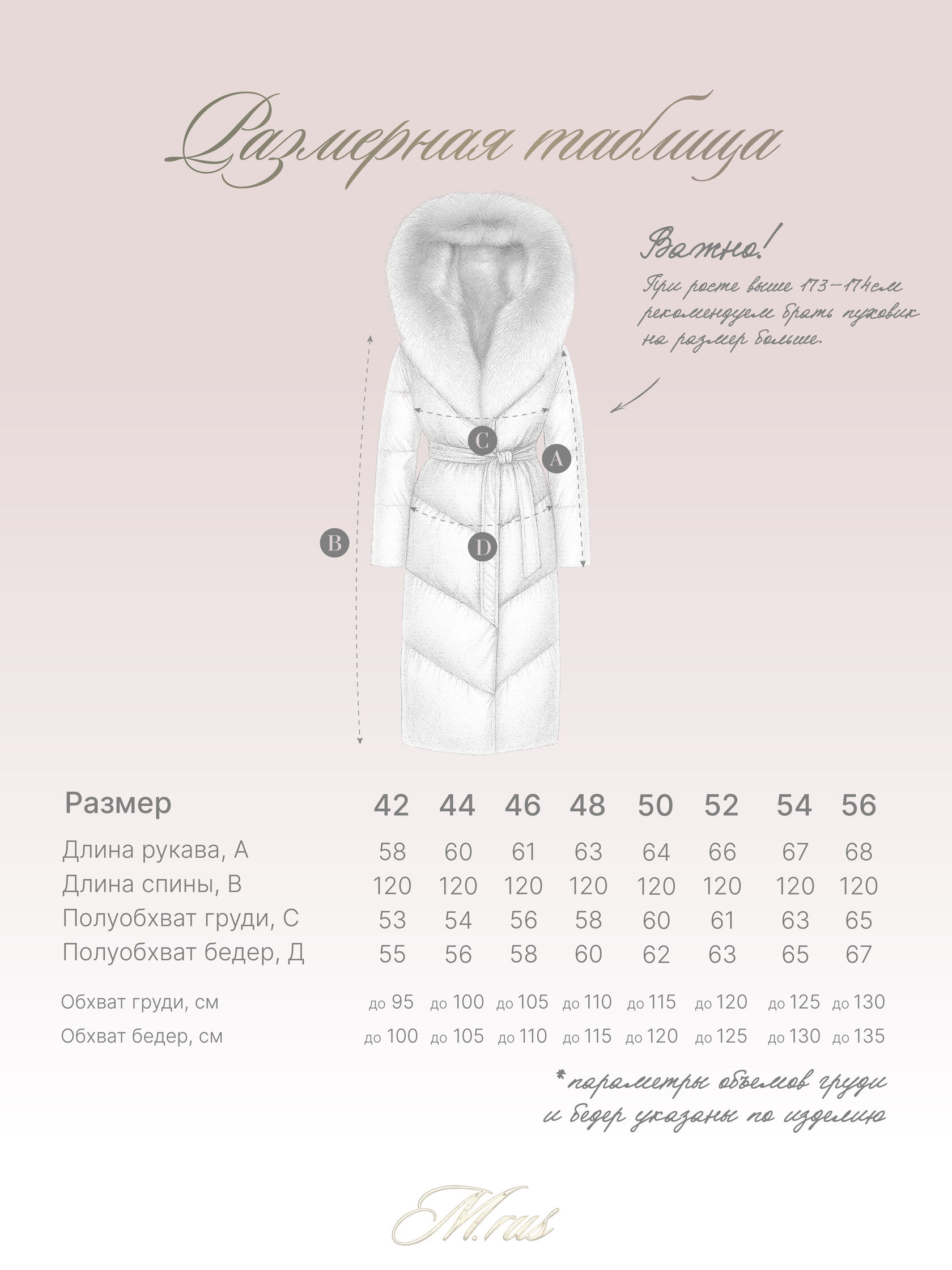 Эта модель — о том, как может выглядеть тёплая зима: изысканно, легко и с характером. Приталенный силуэт подчёркивает фигуру, а несъёмный капюшон с густым мехом лисы добавляет образу статус и мягкую графичность.