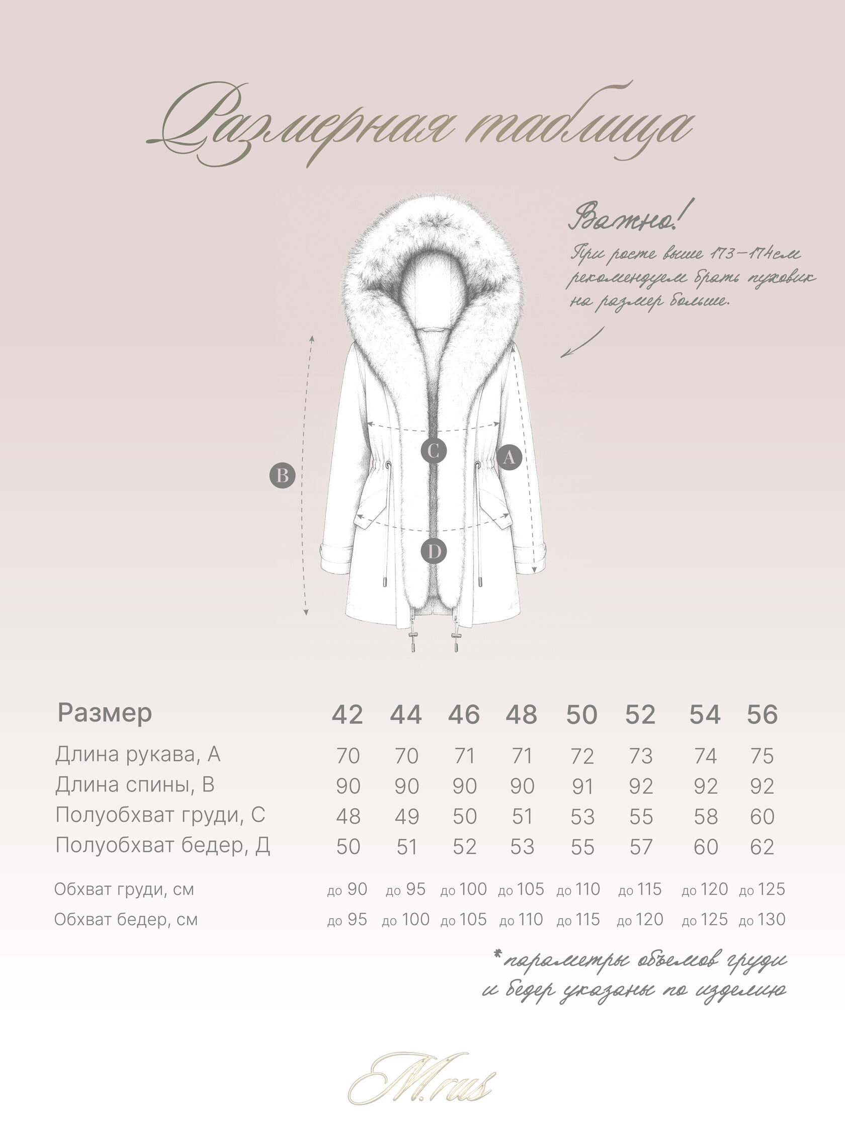 Размерная таблица: