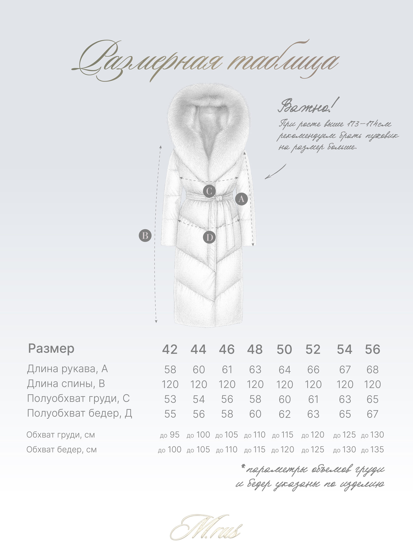 90% утиный пух с Fill Power 800+ надёжно защищает от холода и остаётся невесомым. Перламутровая ткань с водоотталкивающей пропиткой эффектна и практична — легко очищается влажной салфеткой.