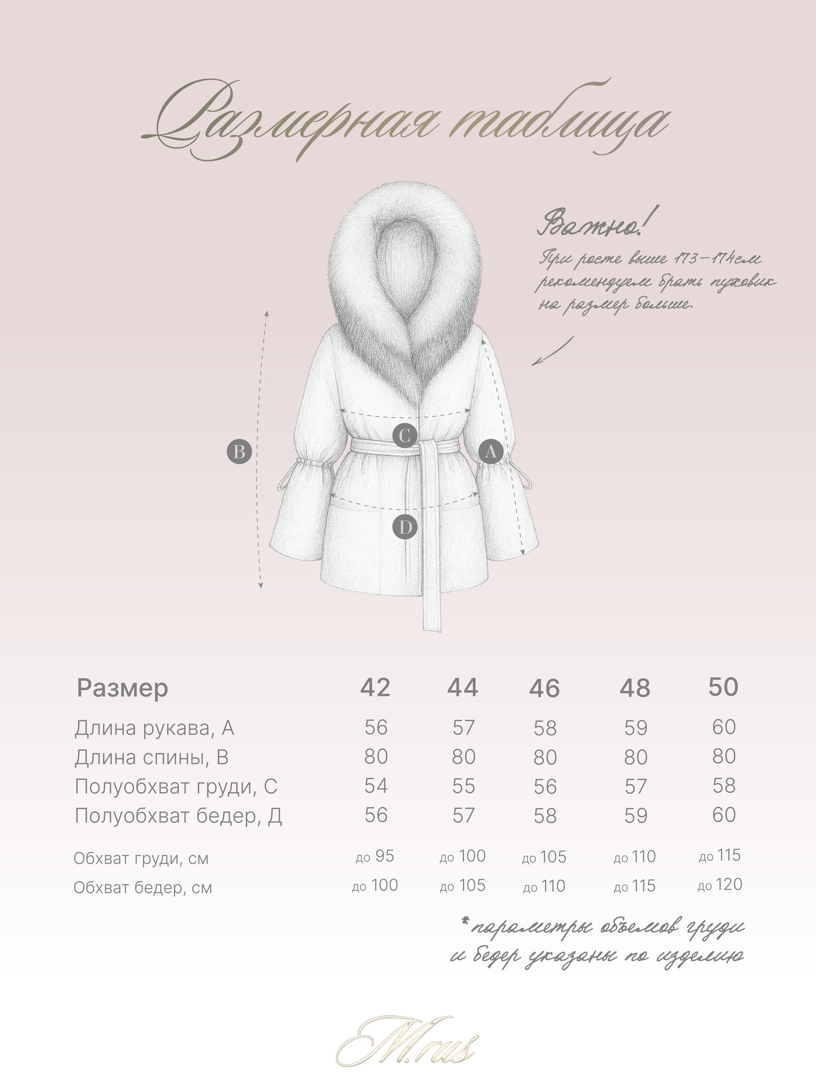 Размерная таблица: