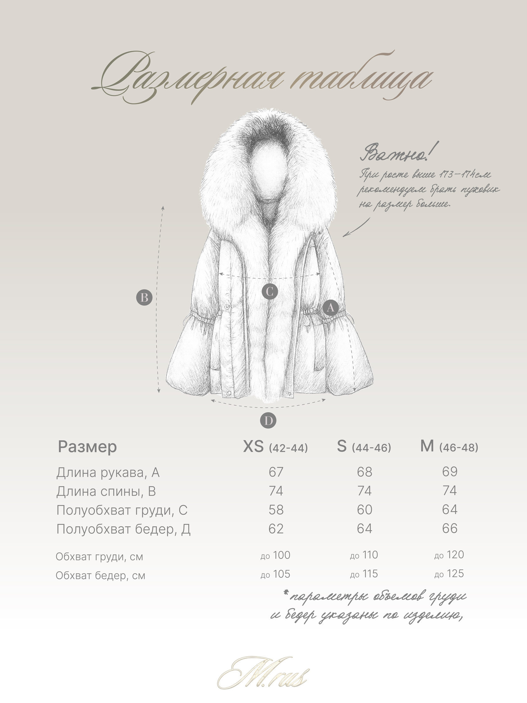 Периметр модели обрамлён натуральным мехом, который можно носить наружу или прятать внутрь для максимального тепла. Это делает пуховик универсальным: он одинаково уместен и в повседневном ритме города, и в вечернем образе.