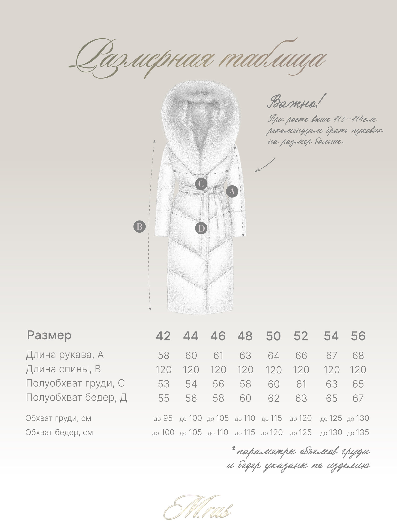 Эта модель — о том, как может выглядеть тёплая зима: изысканно, легко и с характером. Приталенный силуэт подчёркивает фигуру, а несъёмный капюшон с густым мехом лисы добавляет образу статус и мягкую графичность.