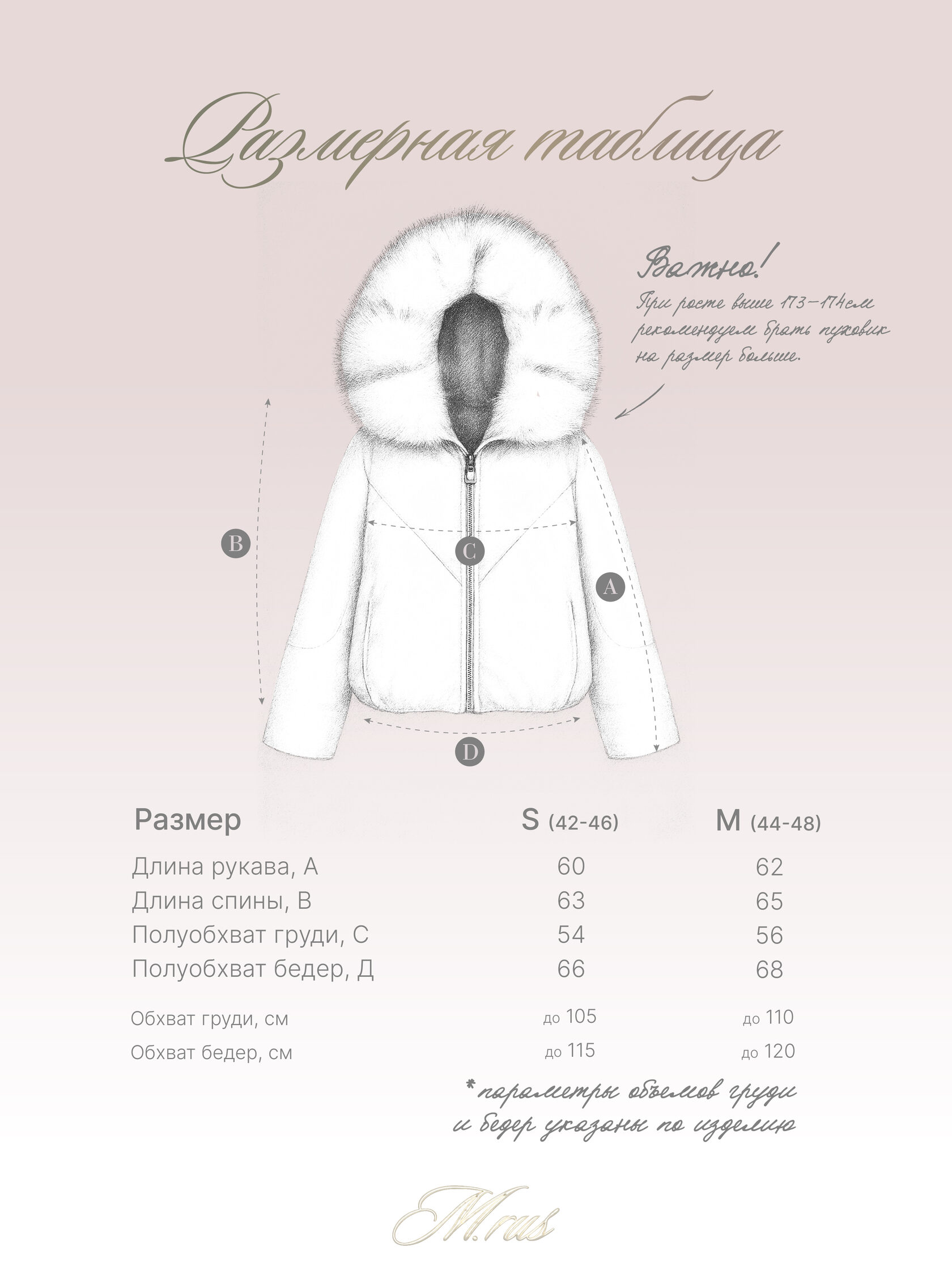 Этот пуховик создан для тех, кто ценит роскошь в деталях. Его свободный силуэт обволакивает мягкостью и комфортом, превращая повседневный выход в особый ритуал. Капюшон украшен густым натуральным мехом, который придаёт образу изысканность и благородство.